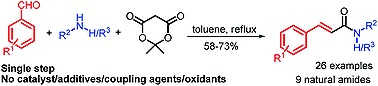 Rapid Access to Cinnamamides and Piper Amides via Three Component Coupling of Arylaldehyde, Amines, and Meldrum’s Acid