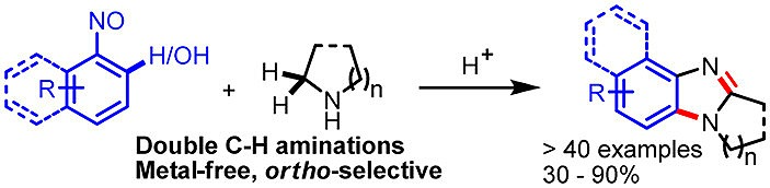 Metal-Free Sequential C(sp2)–H/OH and C(sp3)–H Aminations of Nitrosoarenes and N-Heterocycles to Ring-Fused Imidazoles