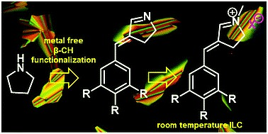 Metal-free C–H functionalization of pyrrolidine to pyrrolinium-based room temperature ionic liquid crystals