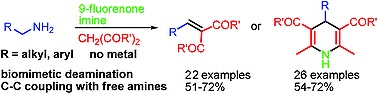 Metal Free Biomimetic Deaminative Direct C-C Coupling of Unprotected Primary Amines with Active Methylene Compounds