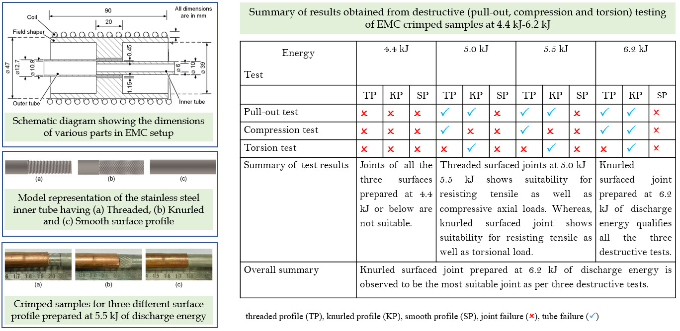 • Electromagnetic Crimping for tube to tube joints: Different surface profiles have been analyzed.