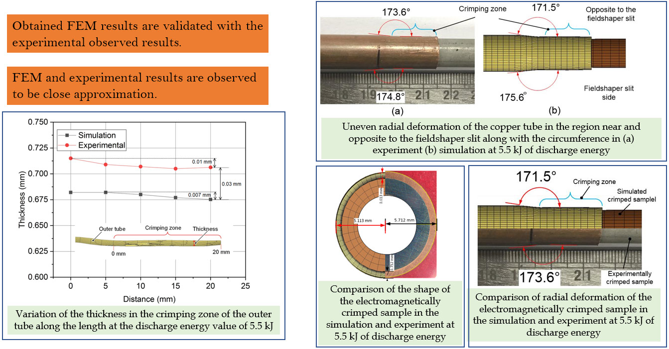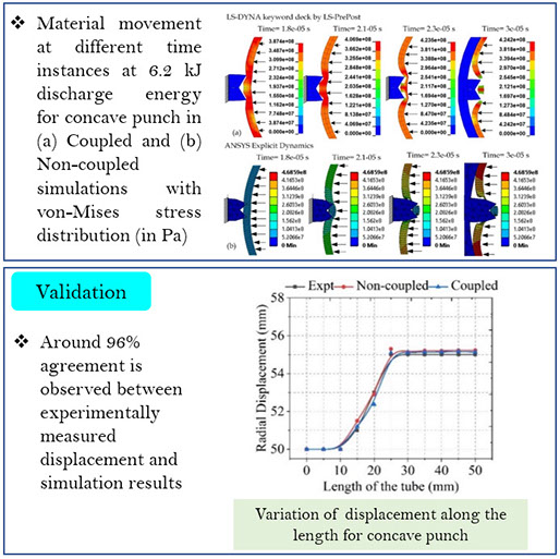 • Electromagnetic crimping of Cu-SS Tube-to-tube joint : FEM Simulation in LS-DYNA and ANSYS have been successfully matched with experiment for both smooth and threaded surface.