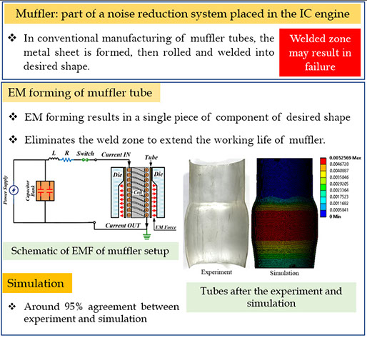 • Electromagnetic forming and perforation of Al tubes: FEM Simulation in ANSYS and LS-Dyna have been successfully matched with experiment.