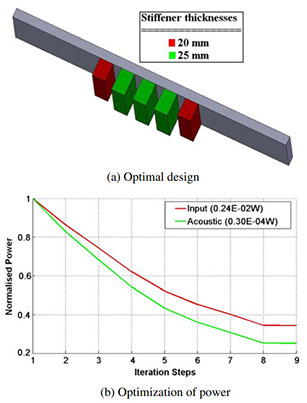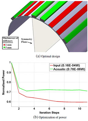 • In this work we keep the base structure unaltered, the location and thickness of the added stiffeners are decided using optimality criteria method to minimize the radiated sound.