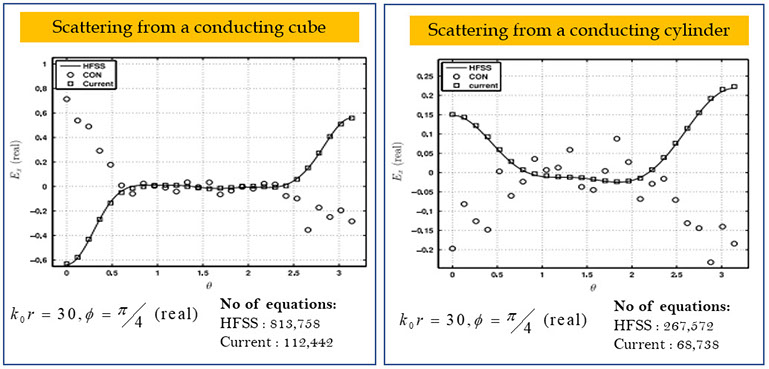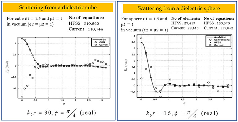 • We have solved a series of radiation and scattering problems, involving both conducting and dielectric bodies, including both convex and nonconvex domains. In all these cases proposed formulation has better coarse mesh accuracy than existing conventional formulation.