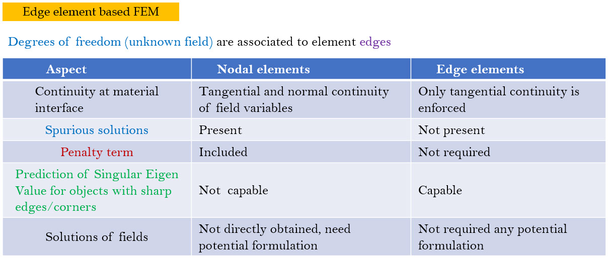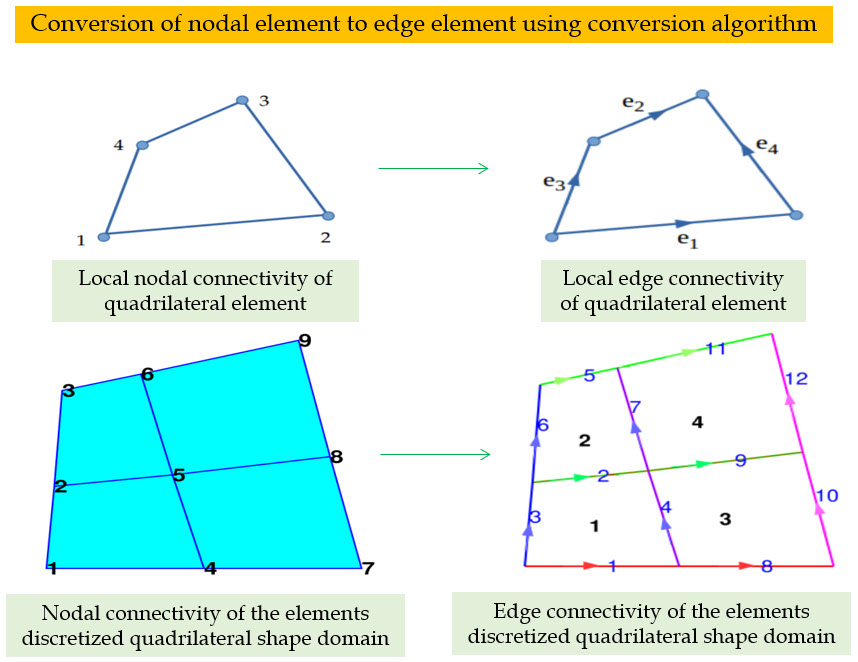 • In  edge  based  FEM  each element is formed by connecting the edges. Each edge of the edge element is formed by joining the  two  nodes  of  the  element.